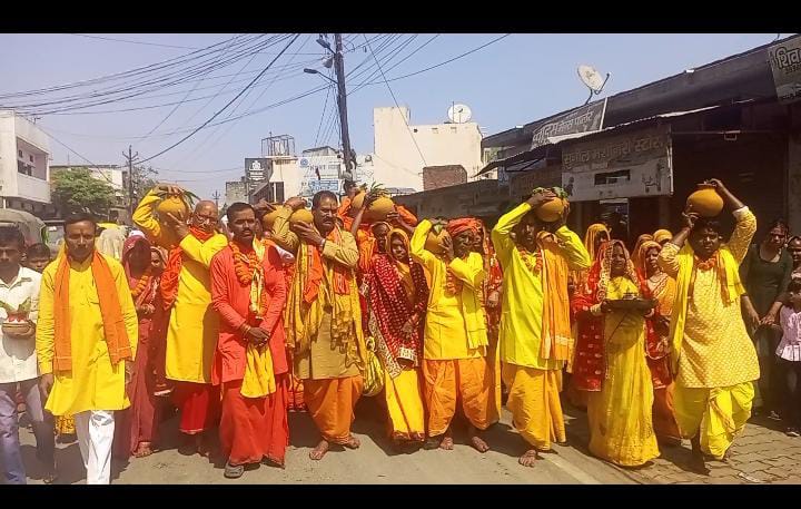 भक्ति भाव के बड़े गांव से निकला रूद्र महायज्ञ का कलश शोभा यात्रा,लगा जयकारा पिपराइच नगर पंचायत पिपराइच के सोनराइच उर्फ बड़ा गांव के शिव मंदिर परिसर से सोमवार सुबह ग्यारह दिवसीय रुद्र महायज्ञ मंत्रों व जयकारे के बीच शुभारंभ हुआ। यज्ञाचार्य पंडित राजेश पांडेय के वैदिक मंत्रोच्चार के बीच यजमान विजय प्रताप सिंह , जनार्दन सिंह, सूरज चौहान ,व सरजू, बजरंगी चौहान,सुग्रीव आदि ने देवि देवताओं का पूजन किया । इसके बाद धूमधाम व भक्तिभाव के साथ विशाल कलश शोभायात्रा निकाली गयी ।नगर पंचायत पिपराइच बड़े गांव , चकदहा , सीधावल, मुड़िला आदि गांव की सैकड़ों महिलाऐं व कन्याओं ने मंगलाचरण गीत गाते हुए कलश उठाया । गगनभेदी जयघोष से नगर गुंजित हो उठा । भोलेनाथ की झांकी मे शहनाई ,बाजे के साथ यज्ञ स्थल शिव मंदिर से शुरू होकर पिपराइच मुख्य बाजार होते हुए कलश शोभायात्रा ताजपिपरा मोटे शिव मंदिर पहुंचा ।देवी देवताओं गंगा जी आदि के पूजन भीम सरोवर से कलश में जल भरा गया ।इस दौरान यज्ञ के शिव इस बीच पुलिस के सुरक्षा व्यवस्था मजबूत रहा । शिव सेवको के गगन भेदी हरहर महादेव के जय घोष बैदिक मंत्रोचार ,महिलाओं के भक्तिमयी मंगला चरण भजनों से शोभायात्रा से पूरा क्षेत्र शिवमय हो गया । यज्ञ संयोजक सुनील मद्धेशिया आदि नें बताया कि ग्यारह दिवसीय महायज्ञ के दौरान प्रतिदिन दोपहर में कथावाचक प्रदीप सागर आदि का कथा प्रवचन तथा रात्रि में मथुरा बृदांबन के कलाकारों द्वारा रामलीला का मंचन किया जायेगा । इस अवसर पर यज्ञाचार्य पं. राजेश पाण्डेय, बालक दास , गिरीश तिवारी,नागेंद्र पांडे, जगदीश तिवारी बृजेश ,अनील मद्धेशिया, आशीष, अभिषेक सिंह,,सोनू, गुड्डू हिंदू , सूरज, पप्पू चौहान ,अरूण तिवारी, संतोष पांडेय , आदि मौजूद रहे।