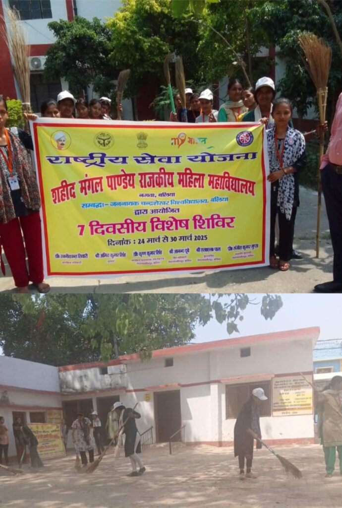 बलिया, 26 मार्च 2025: शहीद मंगल पांडेय राजकीय महिला महाविद्यालय, बलिया में चल रहे एनएसएस सात दिवसीय विशेष शिविर के तीसरे दिन स्वयंसेवकों ने विभिन्न सामाजिक और जागरूकता गतिविधियों में बढ़-चढ़कर हिस्सा लिया, इस दौरान योग सत्र, सामुदायिक श्रमदान, कानूनी जागरूकता वेबिनार, खेलकूद प्रतियोगिताएँ और सांस्कृतिक कार्यक्रम आयोजित किए गए, प्रथम सत्र में स्वयंसेवकों ने पोषित ग्राम नगवा के प्राथमिक विद्यालय एवं देव स्थान में सामुदायिक श्रमदान किया,इस दौरान विद्यालय परिसर और मंदिर की सफाई की गई, दीवारों पर प्रेरणादायक संदेश लिखे गए और ग्रामीणों को स्वच्छता के प्रति जागरूक किया गया, स्वच्छ भारत अभियान के अंतर्गत स्वयंसेवकों ने “स्वच्छ भारत, स्वस्थ भारत” का नारा बुलंद किया और ग्रामीणों को प्लास्टिक मुक्त वातावरण के महत्व से अवगत कराया,