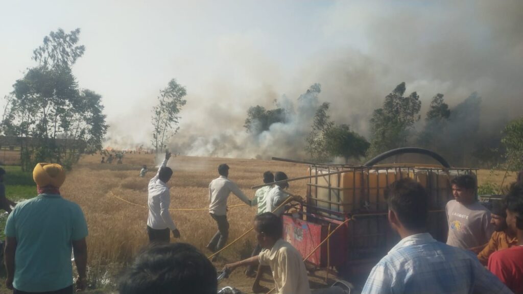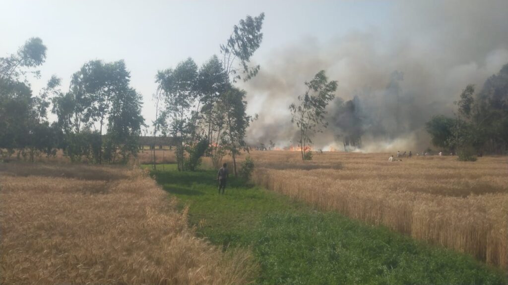 आग ने विकराल रूप किया धारण किसान और आस पास के ग्रामीण आग को बुझाने में जुटे,
