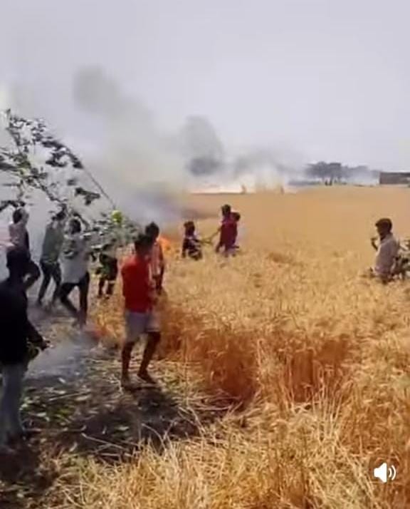 आग से जलकर राख हुई 25 बीघा गेहूं की फसल