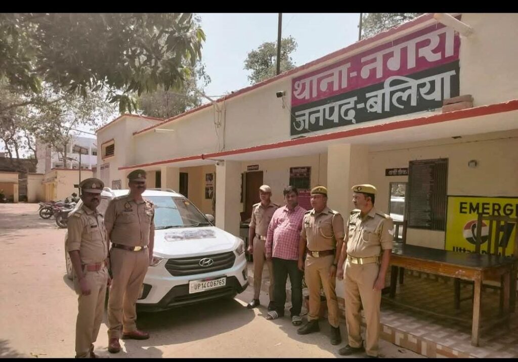 आधा दर्जन मुकदमे में निरुद्ध फर्जी दरोगा को नगरा पुलिस ने किया गिरफ्तार।बलिया । जनपद के नगरा पुलिस ने फर्जी दारोगा को गिरफ्तार करने में पाई कामयाबी ।पकड़े गए आरोपी के पास 1 अदद ग्लाक पिस्टल (ट्वाय गन),01 अदद अवैध तमंचा .315 बोर, 01 अदद जिंदा कारतूस .315 बोर, 01 अदद खोखा कारतूस .315 बोर, 01 अदद फर्जी पुलिस पहचान पत्र, 01 अदद सफेद रंग की क्रेटा कार तथा 06 अदद एटीएम कार्ड किया बरामद ।ज्ञात है कि थाना नगरा पुलिस टीम द्वारा दिनांक 04.04.2025 को एक फर्जी दरोगा/अभियुक्त को अवैध शस्र तथा फर्जी पहचान पत्र व 06 अदद ATM कार्ड तथा एक क्रेटा कार के साथ गिरफ्तार किया गया है । जिस सम्बन्ध में थाना स्थानीय पर मु0अ0सं0 103/2025 धारा 319(2), 318(4), 336(3), 339, 340(2) बीएनएस व 3/25 आयुध अधि0 पंजीकृत किया गया है ।