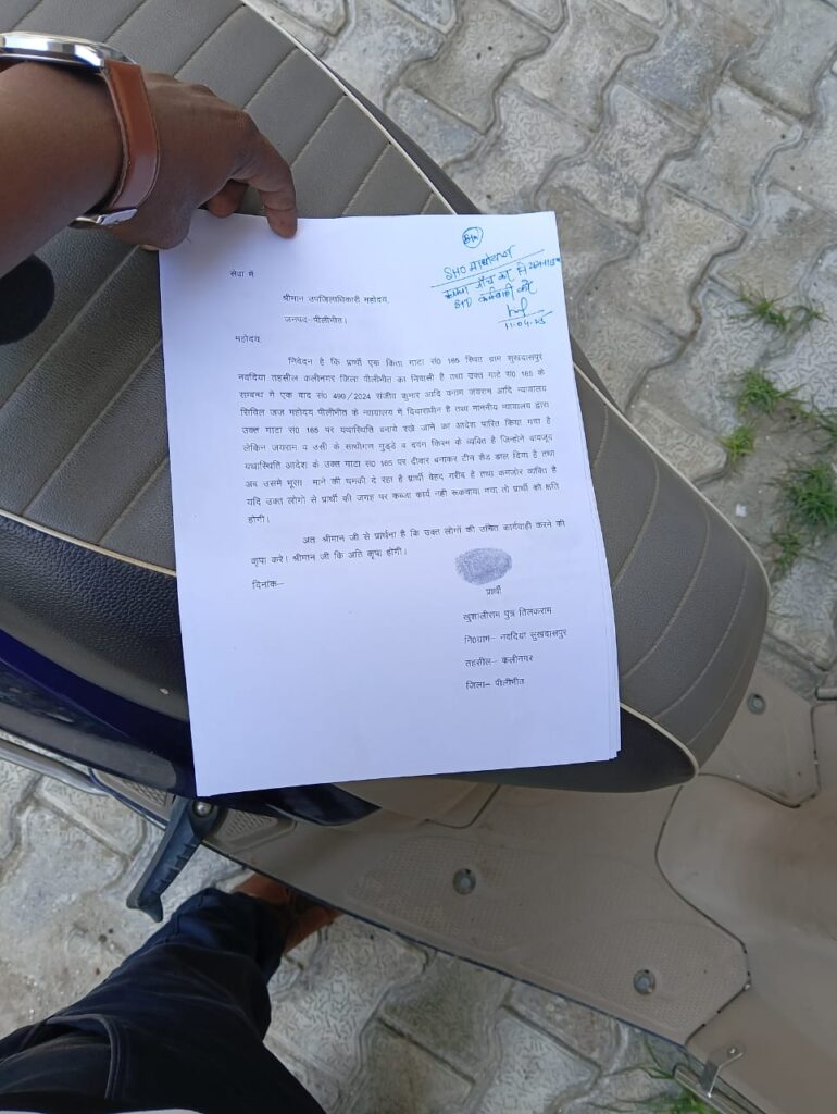 पीड़ित ने जगह पर निर्माणाधीन कार्य को रुकवाने के लिए एसडीएम को दिया शिकायती पत्र,