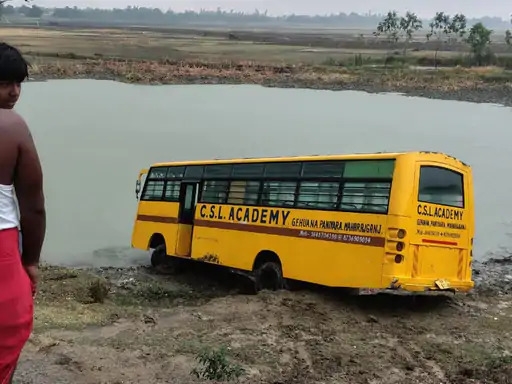 महराजगंज पनियरा तेंदुअहिया जीरो बांध पर फिसली स्कूल बस, बाल-बाल बचे बच्चे