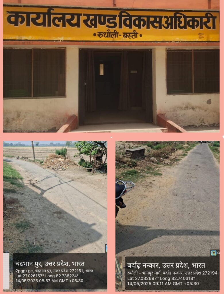 बस्ती – रुधौली जिले के बहुचर्चित विकास खण्ड रुधौली में भष्टाचार का सिलसिला रुकने का नाम नहीं ले रहा है। ग्राम पंचायत चन्द्र भानपुर में खुलेआम लूट खसोट जारी है । ग्राम पंचायत चन्द्र भानपुर में भानपुर पिच रोड से मायाराम के घर तक तथा भानपुर पिच रोड से नकथर सरहद तक पिच रोड के दोनो तरफ मिट्टी पटाई कार्य में 121 मजदूरो की आनलाइन हाजिरी जारी है जबकि धरातल पर मजदूरों की उपस्थिति नही है। जिसका फोटो व वीडियो स्थानीय ग्रामीणों ने जीपीएस मैप कैमरे में 3 दिनो का बना लिया है जो बतौर साक्ष्य मौजूद है। और मीडिया टीम के कबरेज के दौरान संबंधित साइड पर एक भी मजदूर काम करते नही मिले वही हैरान करने वाली बात है कि पंचायत सचिव सहित सभी जिम्मेदार अधिकारियों की सरपरस्ती में सरकारी धन को लूट जा रहा है। जिससे लग रहा है कि खण्ड विकास अधिकारी सहित अन्य जिम्मेदार ब्लाक कर्मचारी भ्रष्टाचार को रोकने व कार्यवाही के बजाय बढ़ावा देने में मस्त हैं।