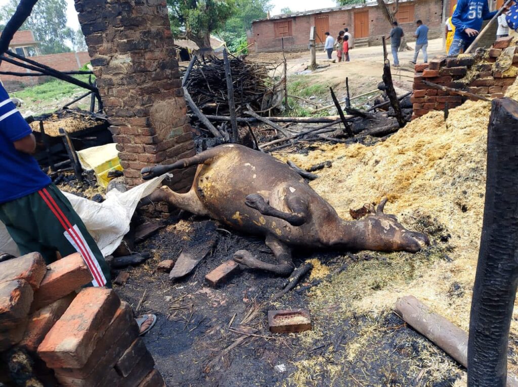 ग्राम महादिया में कल रात किसी कारणवश एक मकान में आग लग गई जिससे 3 से 4 गोवंश की जलकर मृत्यु हो गई