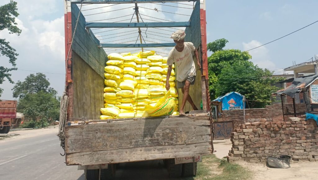 चंद पैसों के लिए पुरी ट्रक में लगी खाद को कर दिया ब्लैक ताकते रह गए किसान।