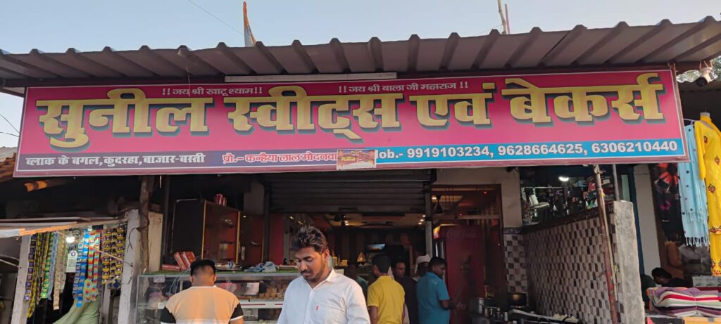 सुनील स्वीट्स एवं बेकर्स के नाम से कुदरहा बाजार में चल रहा है दूकान।