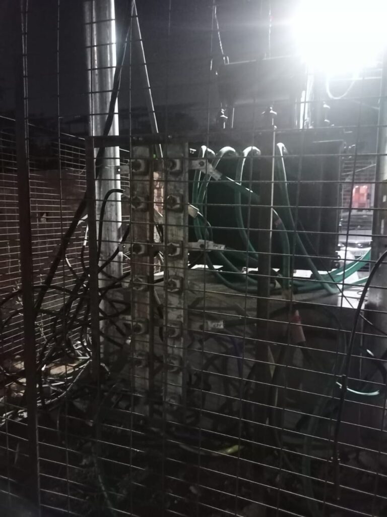 दो दिन पहले जला 400 केवीए ट्रांसफार्मर आपातकालीन व्यवस्था हेतु लगी ट्राली से की जा रही विद्युत आपूर्ति||