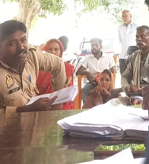 महराजगंज पुरन्दरपुर में महिला को जमीन पर बैठाकर की सुनवाई