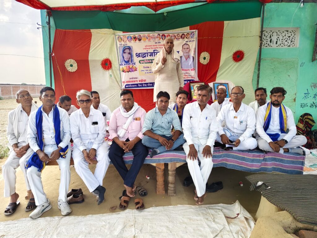 दबोह :–दबोह में गोरा पर हरीमोहन बझईया की माता जी परि. बतासो बाई जी के परिनिर्वाण पर श्रद्धांजलि कार्यक्रम रखा गया जिसमें मृत्यभोज को बंद करने का निर्णय लिया गया कार्यक्रम में उपस्थित पूर्व ब्लॉक शिक्षा अधिकारी जेपी सर , मातादीन पटवारी , कवि भगीरथ सिरोलिया, बौद्धाचार्य मेघ सिंह बौद्ध,ने अपने बात रखी जिसका मंच संचालन रामलखन बौद्ध जी ने किया वही मुख्य वक्ता के रूप में उपस्थित इंजी.वीरू धनोलिया ने कहा कि आज देश में समाज में फैली कुरीतियों को बंद करना ही हमारा पहले काम है लेकिन इसके साथ यह भी देखना है आज देश में हमें अपने समाज को किस तरह से आगे लेकर जाना है किस तरह से देश को आगे लेकर जाना है आज देश में जगह जगह पर जाती के नाम पर ,धर्म के नाम पर अन्याय अत्याचार बड़ रहे है लेकिन हमें सोचने समझने वाली बात यह है कि हम पर अन्याय अत्याचार होता ही क्यों है क्यों कि आज देश में संविधान में दिए गए आर्थिक ,सामाजिक और राजनीतिक बराबरी सिर्फ कागजी बराबरी है जिस तरह से देश का विकाश दिखता है लेकिन सवाल यह है कि कब होगी सामाजिक आर्थिक बराबरी क्योंकि आज समाज