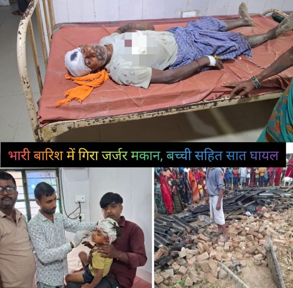 भारी बारिश में गिरा जर्जर मकान, बच्ची सहित सात घायल