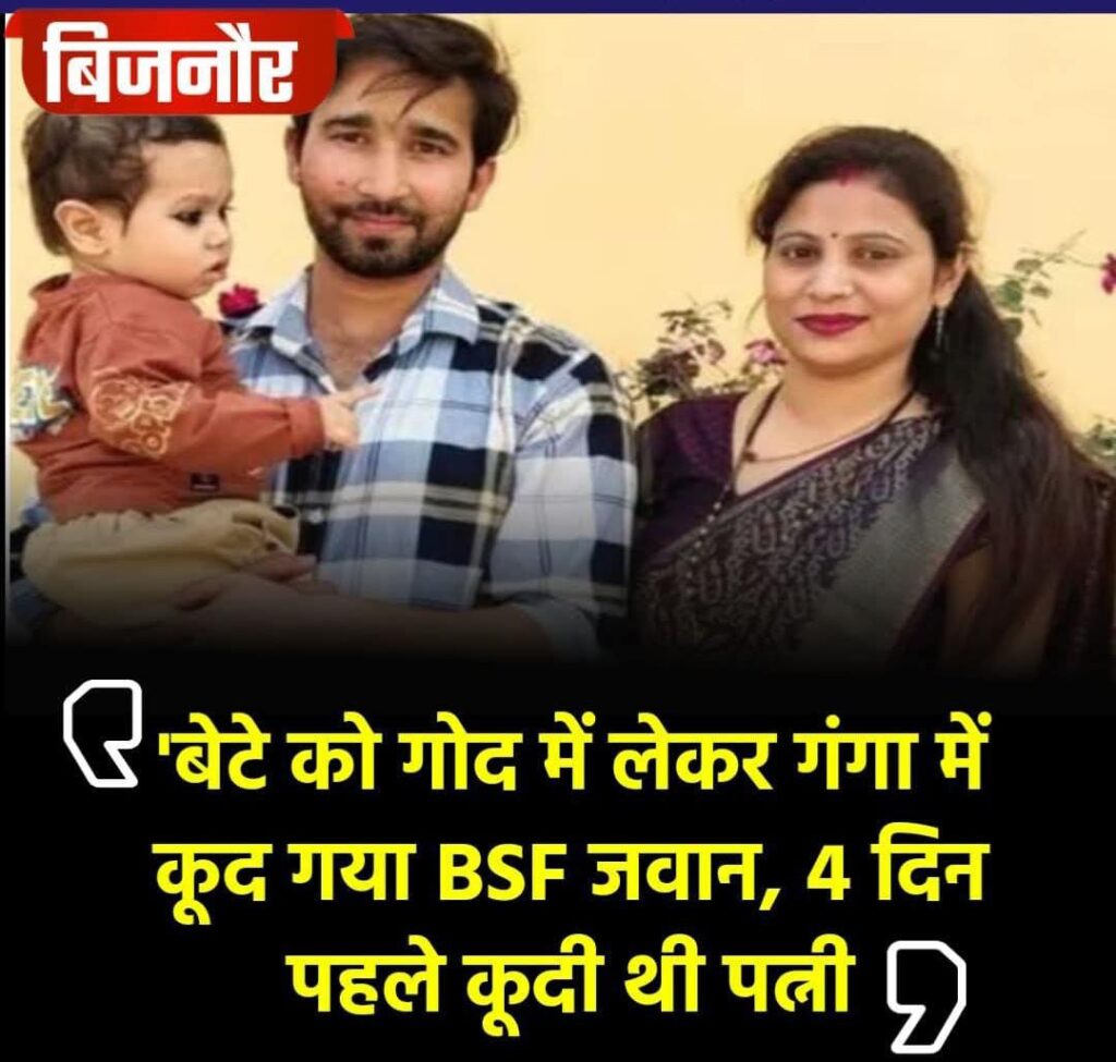 बेटे को गोद में लेकर गंगा में कूद गया BSF जवान, 4 दिन पहले कूदी थी पत्नीये घटना किसी को भी हिला देगी. यूपी के बिजनौर जिले में एक दर्दनाक केस सामने आया है. यहां बीएसएफ जवान ने अपने डेढ़ साल के बेटे के साथ गंगा नदी में छलांग लगा दी. 4 दिन पहले (19 अगस्त) उसकी पत्नी भी नदी में कूद गई थी. उसकी बॉडी अभी तक नहीं मिली है. एक झटके में पूरा परिवार बिखर गया. 31 साल के बीएसएफ जवान राहुल बिजनौर के नजीबाबाद के वेदविहार कॉलोनी के रहने वाले हैं. उनकी पत्नी ने 19 अगस्त को गंगा नदी में छलांग लगा दी थी, जिसकी तलाश अभी तक चल रही है.इस घटना के पीछे एक लव स्टोरी का भी दर्दनाक दी एंड हो गया है. दरअसल, नजीबाबाद के वेद विहार कॉलोनी में बीएसएफ जवान राहुल अपनी पत्नी मनीषा ठाकुर और बेटे प्रणव के साथ रहते थे. राहुल अहमदाबाद में तैनात थे. 5 साल पहले राहुल ने मनीषा से लव मैरिज की थी. शादी के बाद सब कुछ ठीक था. तीन साल बाद बेटे प्रणव का जन्म हुआ. मार्च में राहुल छुट्टी पर घर आए थेयहां पैरालाइसिस से पीड़ित होने के बाद उन्होंने पांच महीने की छुट्टियां बढ़वा ली थीं. 19 अगस्त मंगलवार को राहुल का मनीषा से किसी बात को लेकर विवाद हुआ. फिर गुस्से में मनीषा बोली कि मैं बैराज से कूद कर जान दे दूंगी. इतना कहकर वह घर ने निकल गई. राहुल भी पत्नी के पीछे-पीछे निकले. राहुल ने मनीषा को आस-पास ढूंढा, लेकिन कहीं पता नहीं चला.दवा लेने के बाद वह सीधे टैक्सी से गंगा बैराज पहुंचे और बेटे को गोद में लेकर बैराज की तरफ गए. फिर दोपहर करीब 2 बजे बैराज पार कर पुलिस चौकी गए और वहां दरोगा से पत्नी के बारे में पूछा. वहां से लौटते वक्त गेट नंबर 17 से बेटे संग गंगा में छलांग लगा दी. मोबाइल फोन उन्होंने पुल पर ही छोड़ दिया.यह वही गेट नंबर 17 था, जहां से पांच दिन पहले राहुल की पत्नी मनीषा ने गंगा में कूदकर जान दे दी थी.