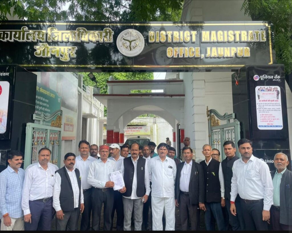 जौनपुर। कलेक्ट्रेट अधिवक्ता संघ के अध्यक्ष घनश्याम सिंह एवं महामंत्री मनोज मिश्रा के नेतृत्व में अधिवक्ताओं का एक प्रतिनिधिमंडल ज़िलाधिकारी कार्यालय पहुँचा। अधिवक्ताओं ने ज़िलाधिकारी का घेराव करते हुए ज़ोरदार विरोध-प्रदर्शन किया।