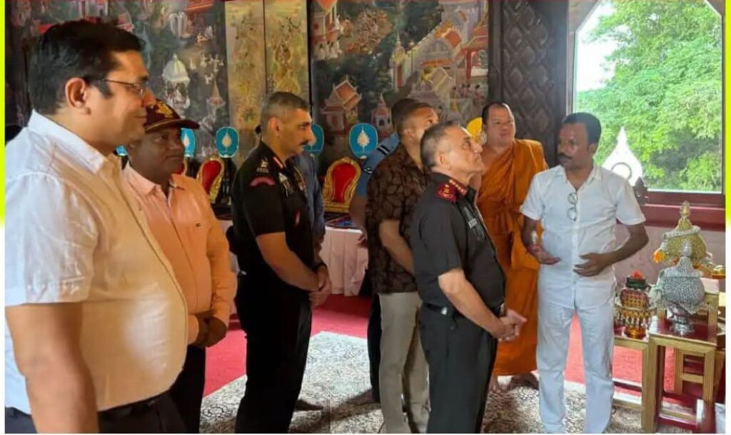 सर्वप्रथम वह रॉयल थाई बुद्धिस्ट मोनास्ट्री पहुंचे। वहां मोनास्ट्री प्रभारी फ्रा सोंगक्रान की उपस्थिति में एडीएम वैभव मिश्र व एएसपी निवेश कटियार ने सीडीएस को बुके देकर स्वागत किया। उन्होंने उपोसथ हाल का अवलोकन किया।