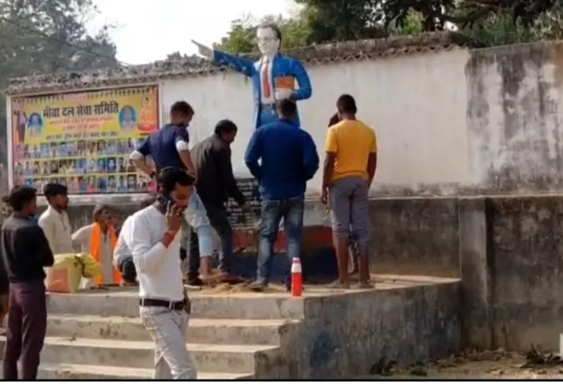 अंबेडकर प्रतिमा खंडित, पुरैना खंडी चौरा में तनाव; पुलिस ने नई मूर्ति स्थापित कर कराया माहौल शांत