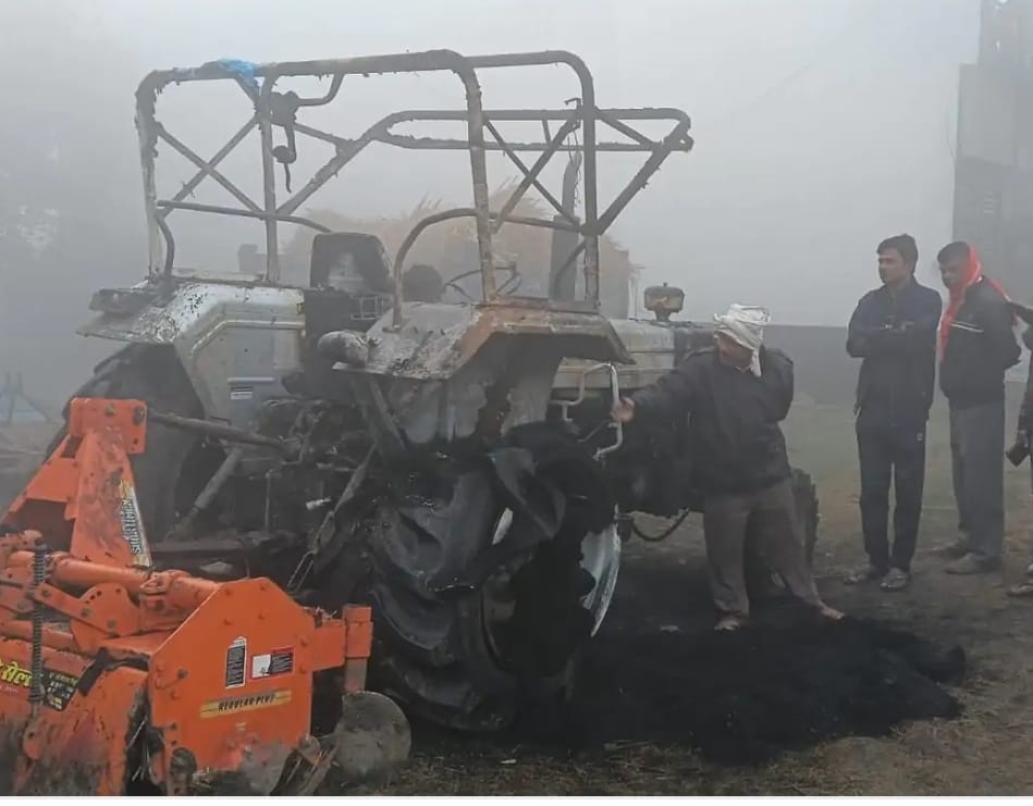 खलिहान पर खड़ा किसान का ट्रैक्टर जलकर खाक, कारणों की पड़ताल में पुलिस