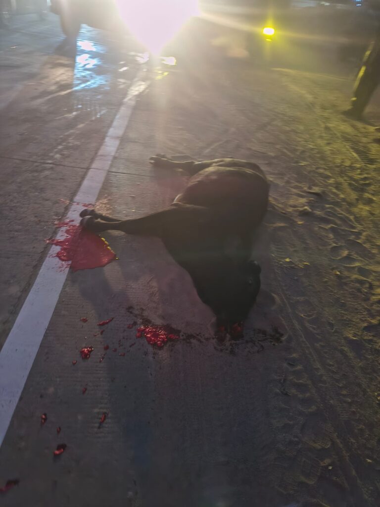 लखनऊ वाराणसी हाईवे के कुल्हना मऊ बाजार के संबिम स्कूल के पास एक बोलेरो up 62 ए यू 4737 जो बदलापुर की तरफ से जौनपुर की तरफ जा रही थी एक गाय से लड़ जाने के बाद पीछे से आ रही तेज रफ्तार में कार up32 d E7314 बोलेरो से जा टकराई मौके पर गाय की मृत्यु हो गई