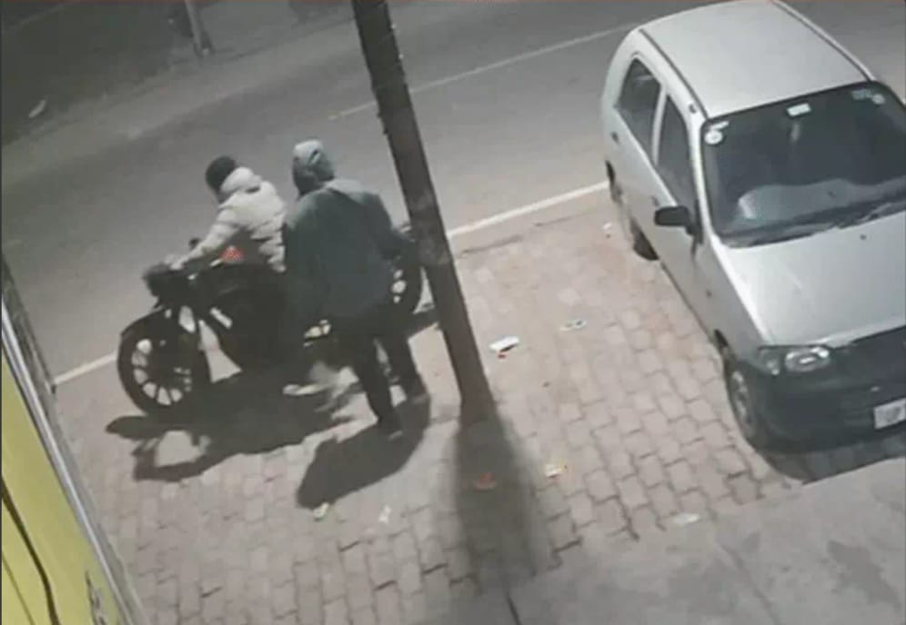 सीसीटीवी फुटेज में देखा जा सकता है कि चोर पहले बाइक का हैंडल लॉक तोड़ता है, फिर चबूतरे से उतारकर सड़क पर लाता है। इसके बाद एक अन्य व्यक्ति की मदद से बाइक को खींचते हुए दूर ले जाया जाता है।