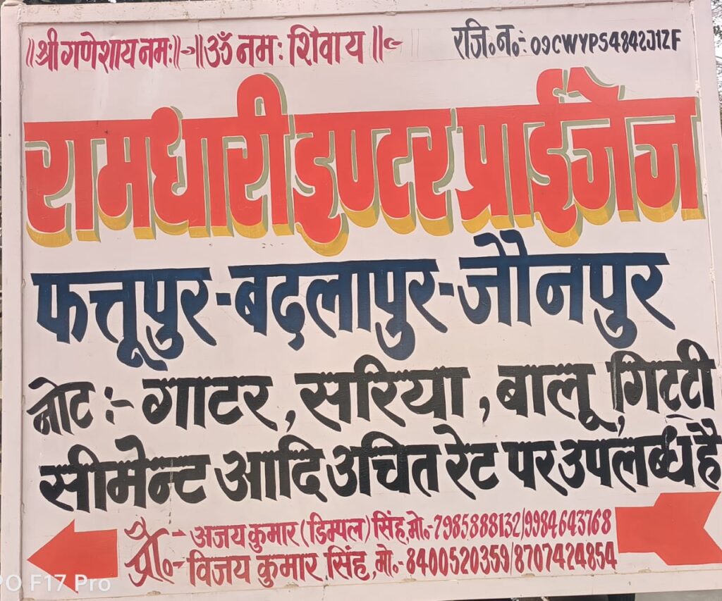 जौनपुर। बदलापुर तहसील क्षेत्र के अंतर्गत ग्राम सभा फ़त्तूपुर में NH 56 के बगल “रामधारी सिंह इंटरप्राइजेज” का भव्य उद्घाटन बुधवार को रामधारी सिंह द्वारा किया गया,जानकारी के अनुसार, इंटरप्राइजेज के प्रोपराइटर अजय सिंह ( डिंपल) , विजय सिंह ( बेटू) ने बताया कि हमारे यहां अच्छे किस्म के बालू,गिट्टी, सीमेंट,सरिया, गाटर,पटिया आदि उचित मूल्य पर उपलब्ध हैं, हमारे उद्घाटन में बदलापुर क्षेत्र से आए हुए संभ्रांत व्यक्ति, अवनीश सिंह (प्रधान),आनंद सिंह,कमलेश सिंह,पप्पू दूबे,सोनू सिंह (भलुवाई ) उत्तम सिंह,नीरज दूबे, पंकज दूबे,हरीश दूबे,बलवंत सिंह,अमित सिंह अन्य सैकड़ों सम्मानित क्षेत्रवासी मौजूद रहे।