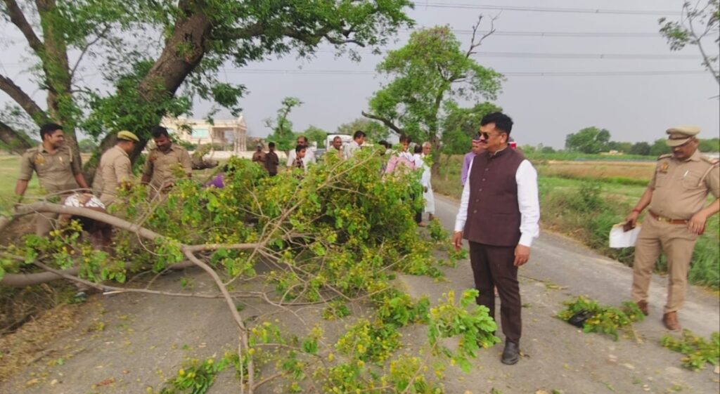 जौनपुर। जिलाधिकारी डॉ. दिनेश चंद्र ने शुक्रवार को मड़ियाहूं तहसील क्षेत्र में बसुही नदी पर निर्माणाधीन पुल का निरीक्षण किया। निरीक्षण के बाद गोपालापुर मार्ग पर जाते समय उन्हें सूचना मिली कि आंधी के चलते एक पेड़ सड़क पर गिर गया है, जिससे मार्ग अवरुद्ध हो गया और जाम की स्थिति बन गई है।