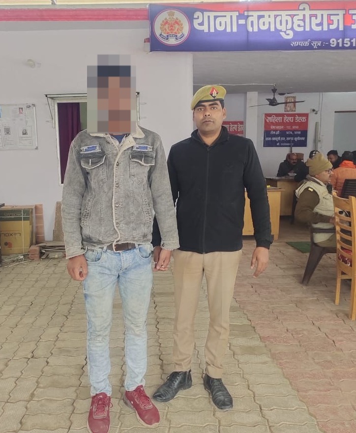 *थाना तमकुहीराज पुलिस द्वारा अपहरण के मुकदमे में वांछित एक अभियुक्त को किया गया गिरफ्तार-*ब्यूरो कुशीनगर जनपद कुशीनगर में वांछित/वारण्टी अभियुक्तों की गिरफ्तारी हेतु चलाये जा रहे अभियान के क्रम में दिनांक 08.01.2025 को थाना तमकुहीराज पुलिस टीम द्वारा मु0अ0सं0 09/2025 धारा 137(2) बीएनएस से सम्बन्धित अभियुक्त शिवम सिंह पुत्र कवलेश सिंह निवासी बसडिला बुजुर्ग थाना तमकुहीराज जनपद कुशीनगर को गिरफ्तार कर अग्रिम विधिक कार्यवाही की जा रही है। *पंजीकृत अभियोगः-*मु0अ0सं0 009/2025 धारा 137(2) बीएनएस थाना तमकुहीराज जनपद कुशीनगर*गिरफ्तार अभियुक्त-*शिवम सिंह पुत्र कवलेश सिंह निवासी बसडिला बुजुर्ग थाना तमकुहीराज जनपद कुशीनगर *गिरफ्तार करने वाली टीमः-* 1. उ0नि0 राजकपूर थाना तमकुहीराज जनपद कुशीनगर 2. हे0कां0 कमलेश कुमार थाना तमकुहीराज जनपद कुशीनगर 3. म0का0 ज्योति गोंड़ थाना तमकुहीराज जनपद कुशीनगर 4.