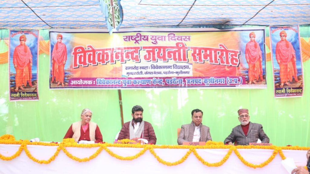 विशिष्ट अतिथि सेवानिवृत्त प्रोफेसर श्रीमती विनोद सोलंकी ने कहा कि विवेकानंद के जीवन दर्शन से सीख लेकर मुसहर बच्चों के भविष्य का निर्माण करना ही उनके प्रति सच्ची श्रद्धांजलि होगी। कार्यक्रम में विशिष्ट अतिथि जिलाधिकारी विशाल भारद्वाज ने कहा कि विवेकानद के जीवन दर्शन को आदर्श मानकर यहां की टीम इतना अच्छा कार्य कर रही है, मुझे काफी प्रसन्नता हुई। समारोह का संचालन करते हुए उत्तर प्रदेश के सचिवालय के।सेवानिवृत्त संयुक्त सचिव अजय पांडेय ने विवेकानद के व्यक्तित्व व कृतित्व पर विशद चर्चा की। समारोह की अध्यक्षता प्रोफेसर संजय पाण्डेय ने करते हुए संस्था के कार्यो की भूरि-भूरि प्रशंसा की। संस्था के सचिव यूएनपीजी कालेज पड़रौना के पूर्व भूगोल विभागाध्यक्ष डॉ सीबी सिंह ने विवेकानंद युवा कल्याण केंद्र के संघर्षों की गाथा का वर्णन करते हुए मुसहर बच्चों के जीवनोत्थान के लिए विद्यालय स्थापना में आने वाली चुनौतियों के बारे में बताया। इस अवसर पर नवजीवन मिशन स्कूल कसया के निदेशक पीसी सैम कुट्टी, समाजसेवी दीपनारायण अग्रवाल, सुधीर शाही, डॉ सुनीता पांडेय, नगर पालिका अध्यक्ष प्रतिनिधि मनीष जायसवाल उर्फ बुलबुल आदि प्रमुख रूप से उपस्थित रहे।