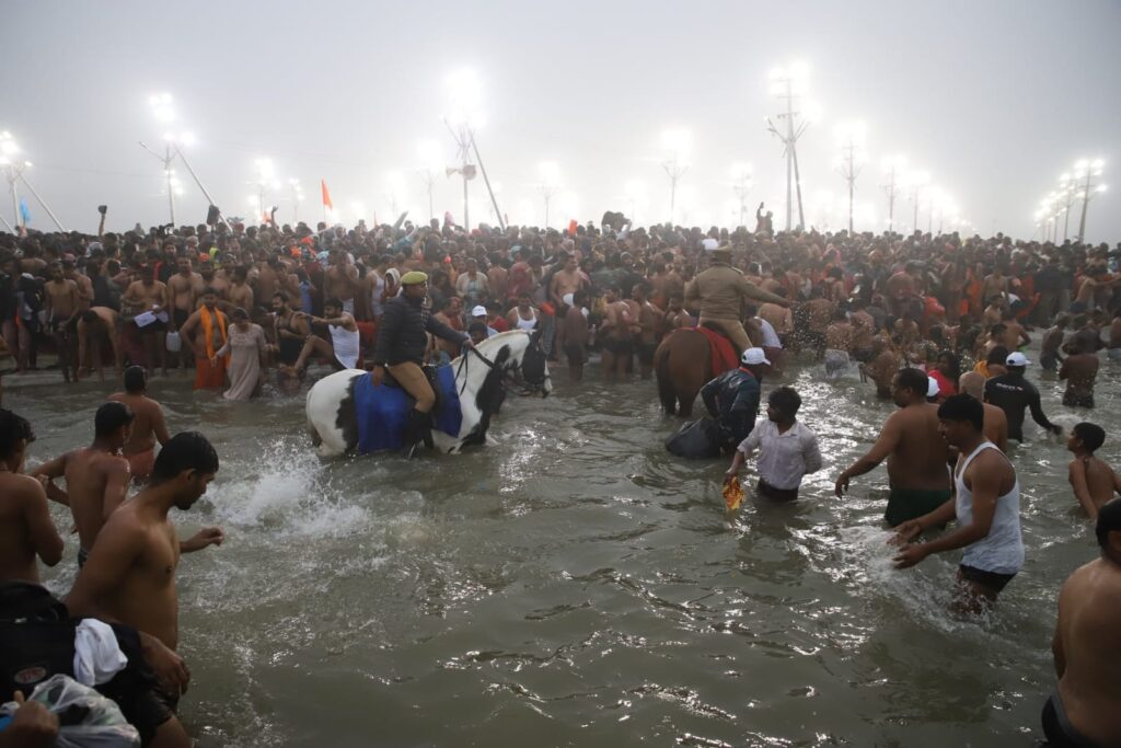 14 जनवरी, महाकुम्भनगर। महाकुम्भ 2025 के पहले अमृत स्नान मकर संक्रांति के दिन मंगववार को संगम तट पर डुबकी लगाने पहुंचे करोड़ों श्रद्धालुओं पर योगी सरकार ने हेलीकॉप्टर से पुष्पवर्षा कराई। हेलीकॉप्टर से सभी घाटों और अखाड़ों पर स्नान के दौरान श्रद्धालुओं पर फूलों की बारिश की गई। गुलाब की पंखुड़ियों की बारिश देख संगम तट पर मौजूद श्रद्धालुओं ने अभिभूत होकर जय श्री राम और हर हर महादेव के नारे लगाए।