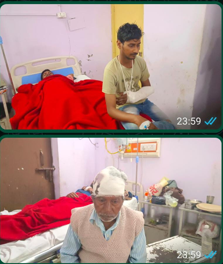 पीड़ित युवक राजाराम के सर पर लगे गंभीर चोट और उनके दो लड़के अमरेश का टूटा हाथ और दूसरे लड़के के सर में गंभीर चोट हालत नाजुक।