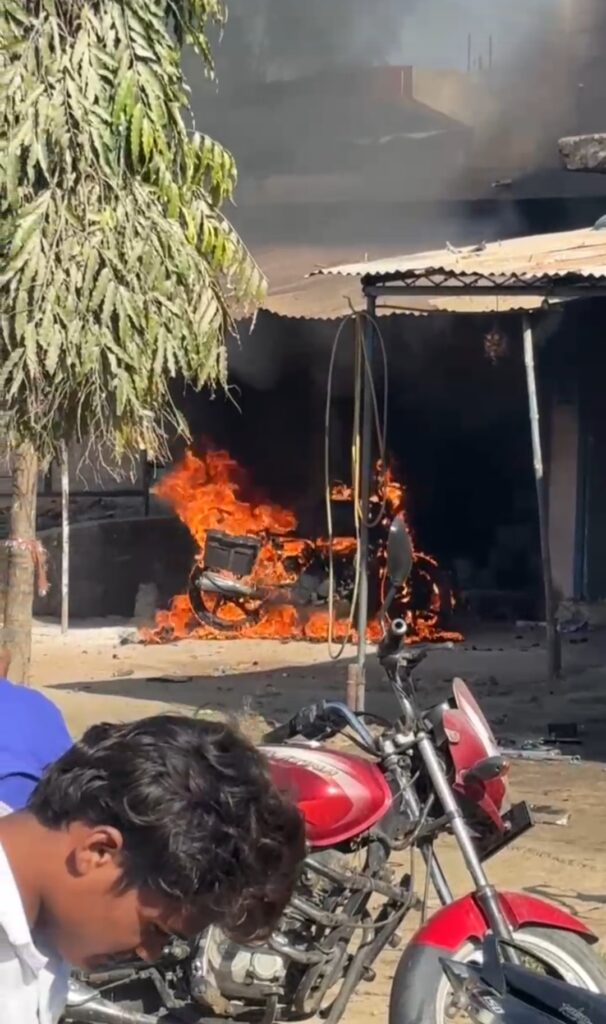कोल्हुई थाना क्षेत्र के बहादुरी बाजार में गैस बिल्डिंग कराने गए व्यक्ति की सुपर स्प्लेंडर बाइक मे अचानक आग लग गयी और धू -धू कर जलने लगा काफ़ी प्रयास किये आग पर काबू नहीं मिला और गाड़ी पूरी तरह जल कर राख हो गयी