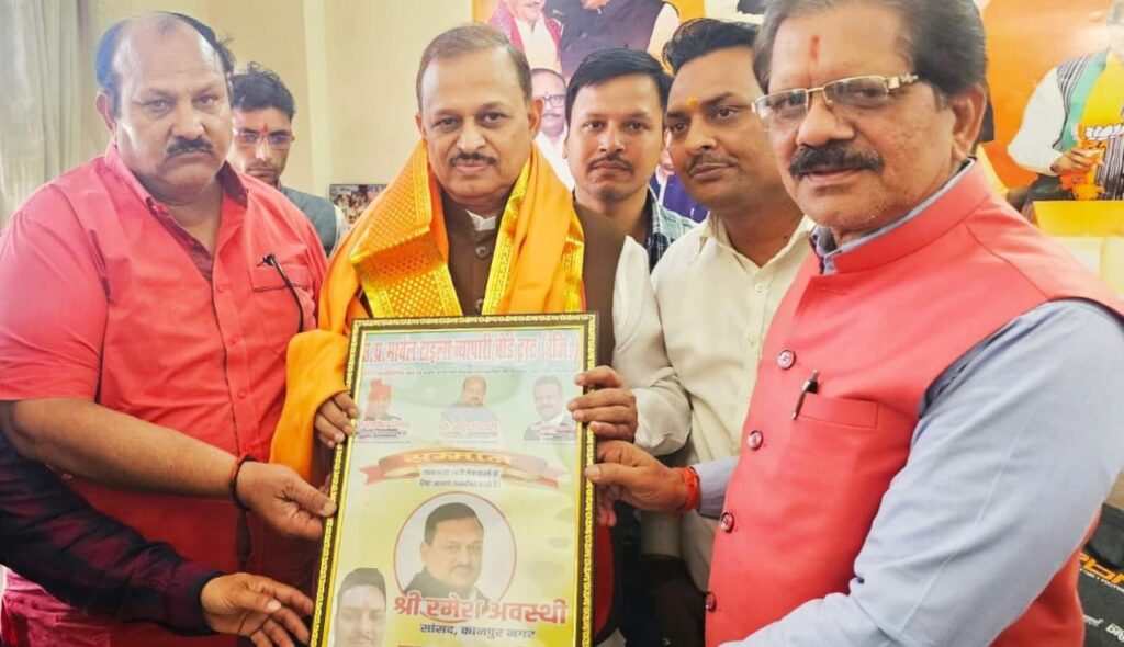कानपुर विशेष संवाददाता। उत्तर प्रदेश मार्बल टाइल्स व्यापारी ट्रस्ट रजि का व्यापारी प्रतिनिधि मंडल कानपुर के सांसद रमेश अवस्थी से भेंट एवं सांसद को मोतियों की माला पटका एवं दुशाला व प्रतीक चिन्ह देकर सम्मानित किया गया, जिसमें प्रमुख रूप से प्रदेश मुख्य संरक्षक अनूप तिवारी प्रदेश चेयरमैन अशोक शुक्ला व्यापारी मुख्य संरक्षक आशुतोष दीक्षित संगठन के प्रदेश अध्यक्ष पवन कुमार गौड़ व प्रदेश मंत्री पीयूष दाधीच आदि व्यापारी कार्यक्रम में उपस्थित रहे।