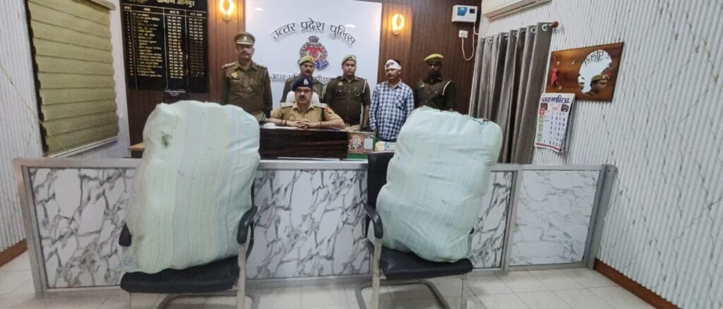 पुलिस अधीक्षक जौनपुर द्वारा अपराध की रोकथाम एवं अपराधियों की गिरफ्तारी हेतु चलाये जा रहे विशेष अभियान के क्रम में अपर पुलिस अधीक्षक ग्रामीण, श्री शैलेन्द्र कुमार सिंह के दिशा निर्देशन एवं क्षेत्राधिकारी मडियाहूँ, श्री गिरेन्द्र कुमार सिंह के पर्यवेक्षण में थाना मड़ियाहूं पुलिस टीम द्वारा एक अभियुक्त को 50 किग्रा गांजा व एक स्वीफ्ट डिजायर वाहन संख्या UP74D6825 के साथ दिनांक 04.03.2025 को गिरफ्तार किया गया, गिरफ्तारी व बरामदगी के आधार पर मु0अ0सं0 80/25 धारा 8/20/25 NDPS Act पंजीकृत कर विधिक कार्यवाही की जा रही है ।