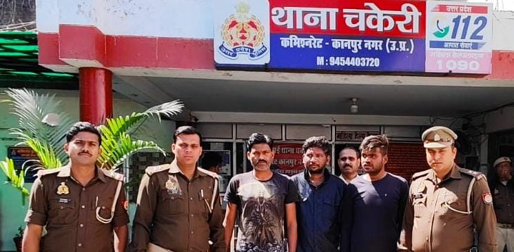 थाना चकेरी पुलिस ने तीन शातिर अपराधियों को किया गिरफ्तार दो मोटरसाइकिल बरामद।
