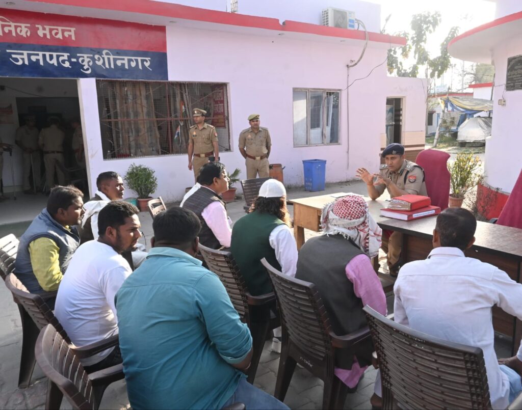 थाना रामकोला पर पीस कमेटी के सदस्यों/ धर्मगुरुओं/प्रतिष्ठित/सम्भ्रान्त व्यक्तियों के साथ की गयी गोष्ठी-पुलिस अधीक्षक कुशीनगर संतोष कुमार मिश्रा द्वारा थाना रामकोला पर आगामी त्योहारों होलिका दहन, होली, रमजान आदि के दृष्टिगत जनपद के धर्मगुरुओं, प्रतिष्ठित/सम्भ्रान्त व्यक्तियों के साथ पीस कमेटी की मीटिंग की गयी। मीटिंग में पुलिस अधीक्षक द्वारा विगत त्यौहारों के अवसर पर घटित साम्प्रदायिक घटनाओं व डायल 112 के माध्यम से प्राप्त साम्प्रदायिक सूचनाओं पर चर्चा करते हुए जनपद के समस्त धर्म गुरुओं एवं जनपद के सभी आमजनों से शान्तिपूर्ण एवं भाई-चारे के साथ रहते हुए त्यौहार को शांति पूर्वक मनाते हुए और लोगों को जागरुक करने की अपील की गयी और बताया गया कि किसी प्रकार के भ्रामक संदेश प्रसारित न करें और भ्रामक संदेश प्राप्त होने पर तुरन्त नजदीकी पुलिस थाना/चौकी को सूचित करें। जनपद की सोशल मीडिया सेल बारीकी से सोशल मीडिया की निगरानी कर रही है और आपत्तिजनक टिप्पणी करने वालों पर जनपदीय पुलिस द्वारा विधिक कार्यवाही अमल में लायी जा रही है।