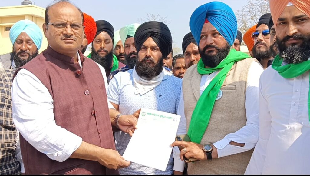के जिला अध्यक्ष रणजीत सिंह ने कलीनगर उप जिलाधिकारी को सोपा ज्ञापन