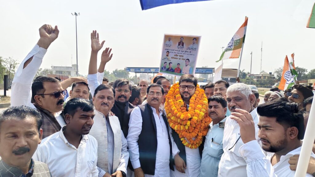 कांग्रेस नेताओं ने किया सांसद तनुज पुनिया का स्वागत