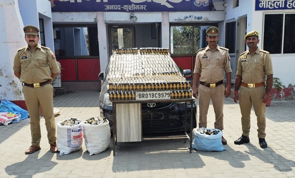 पुलिस अधीक्षक कुशीनगर संतोष कुमार मिश्रा के निर्देशन एवं अपर पुलिस अधीक्षक कुशीनगर रितेश कुमार सिंह के पर्यवेक्षण व क्षेत्राधिकारी खड्डा श्री उमेश चन्द भट्ट के नेतृत्व में अवैध शराब बिक्री/निष्कर्षण/परिवहन के रोक थाम हेतु चलाये जा रहे अभियान के क्रम में आज दिनांक 08.03.2025 को थाना खड्डा पुलिस द्वारा एक अदद वाहन TOYOTA ETIOS वाहन सं0 BR01BC9979 रंग काला से 700 अदद 8 PM टेट्रा पैक प्रत्येक 180 मिली0 अवैध अंग्रेजी शराब बरामद किया गया। पुलिस टीम को देखकर अभियुक्त मौके से फरार हो गया वाहन नम्बर के आधार पर अभियुक्त को चन्हित कर लिया गया है। शीघ्र ही गिरफ्तारी सुनिश्चित की जायेगी। बरामदगी के आधार पर थाना स्थानीय पर मु0अ0सं0-65/25 धारा 60/72 आबकारी अधि0 में अभियोग पंजीकृत कर अग्रिम विधिक कार्यवाही की जा रही है।